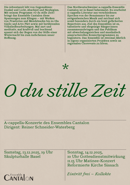 Als Ensemble Cantalon sind wir regelmässig an regionalen Konzerten zu hören. Daneben treten wir an privaten Anlässen sowie Gottesdiensten auf. Ergänzend nehmen wir an regionalen und nationalen Chorevents wie jüngst der 2. Basler Chornacht oder dem Gesangfest beider Basel teil und präsentieren uns dabei einem breiteren Publikum.